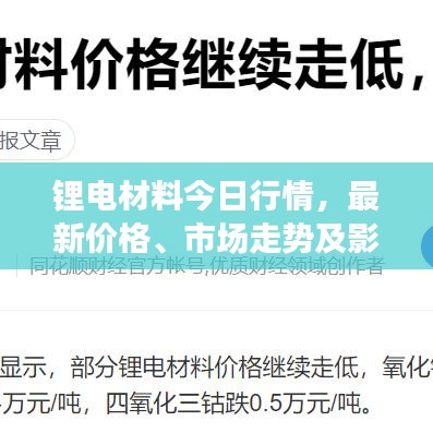 隨著新能源行業(yè)的飛速發(fā)展,鋰電材料價格成為行業(yè)內(nèi)外的關(guān)注焦點,本文將圍繞“今日鋰電材料最新價格”這一主題,探討當前市場走勢以及影響價格的主要因素。