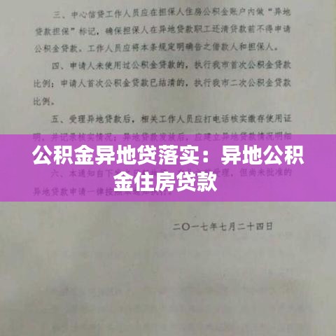 公積金異地貸落實:異地公積金住房貸款