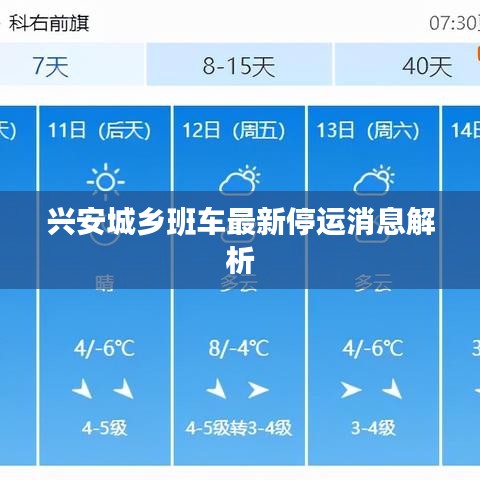隨著全球氣候變化和交通狀況的波動(dòng),各地的交通情況時(shí)常會(huì)有所調(diào)整,關(guān)于“興安城鄉(xiāng)班車(chē)停運(yùn)”的消息引起了廣泛關(guān)注,本文將對(duì)這一問(wèn)題進(jìn)行解答,并結(jié)合最新消息進(jìn)行解析。
